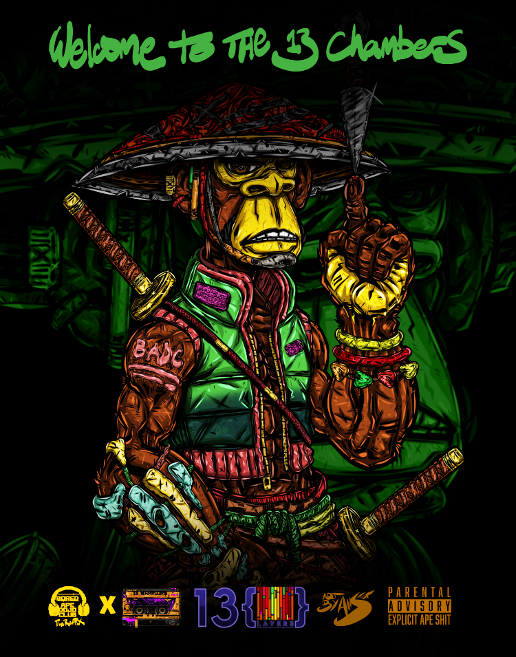{BADCR} IS a super booming mashup that pays homage to hip hop, urban streetwear, Anime, Apes and Martial Arts.